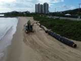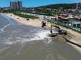 A obra foi iniciada em janeiro de 2026 e utiliza a draga AMAZONE para depositar aproximadamento 39mil m3 de areia com investimento de 38 milhões.